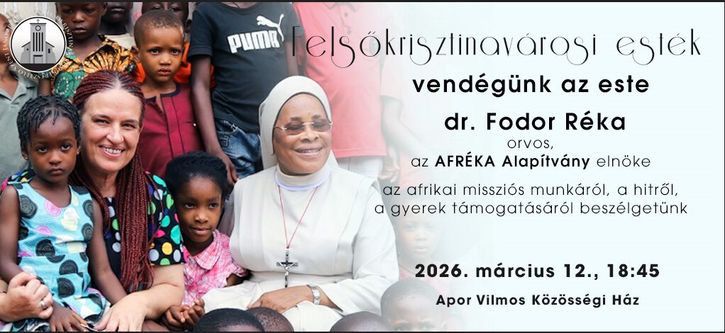 A Felsőkrisztinavárosi esték következő vendége március 12-én, az este háromnegyed hétkor kezdődő program alkalmával dr. Fodor Réka orvos, missziós orvos lesz. Az előadás és a beszélgetés egy olyan orvos életét, hivatását mutatja be, amely sokunk számára elképzelhetetlen szegénységbe kalauzolja a nézőt, hallgatót.